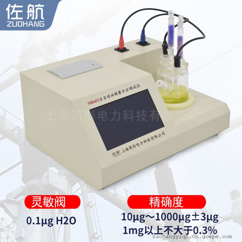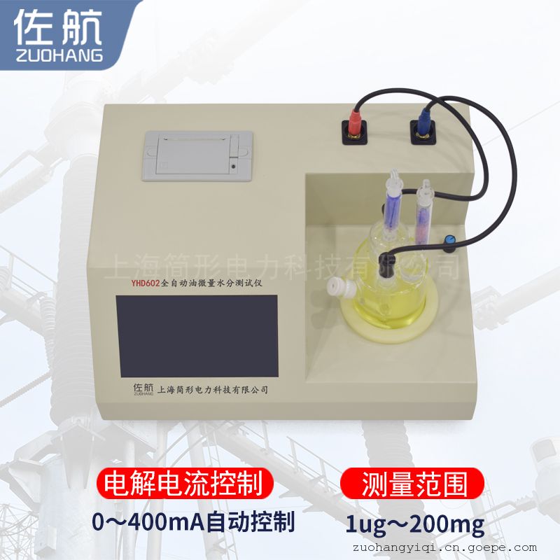 佐航YHD602全自动微量水分测定仪,采用卡尔—费休库伦滴定法,对不同物质进行微量水分的测定,是*可靠的方法。微量水分测定仪成功的应用了这一方法,采用了*先进的自动控制电路,32位嵌入式微处理器作为主控核心,嵌入迷你型操作系统。从而使该仪器工作更可靠,使用更方便。其分析速度快、操作简单、精度高、自动性强等特点。广泛应用于石油、化工、电力、铁路、农药、医药、环保等部门。